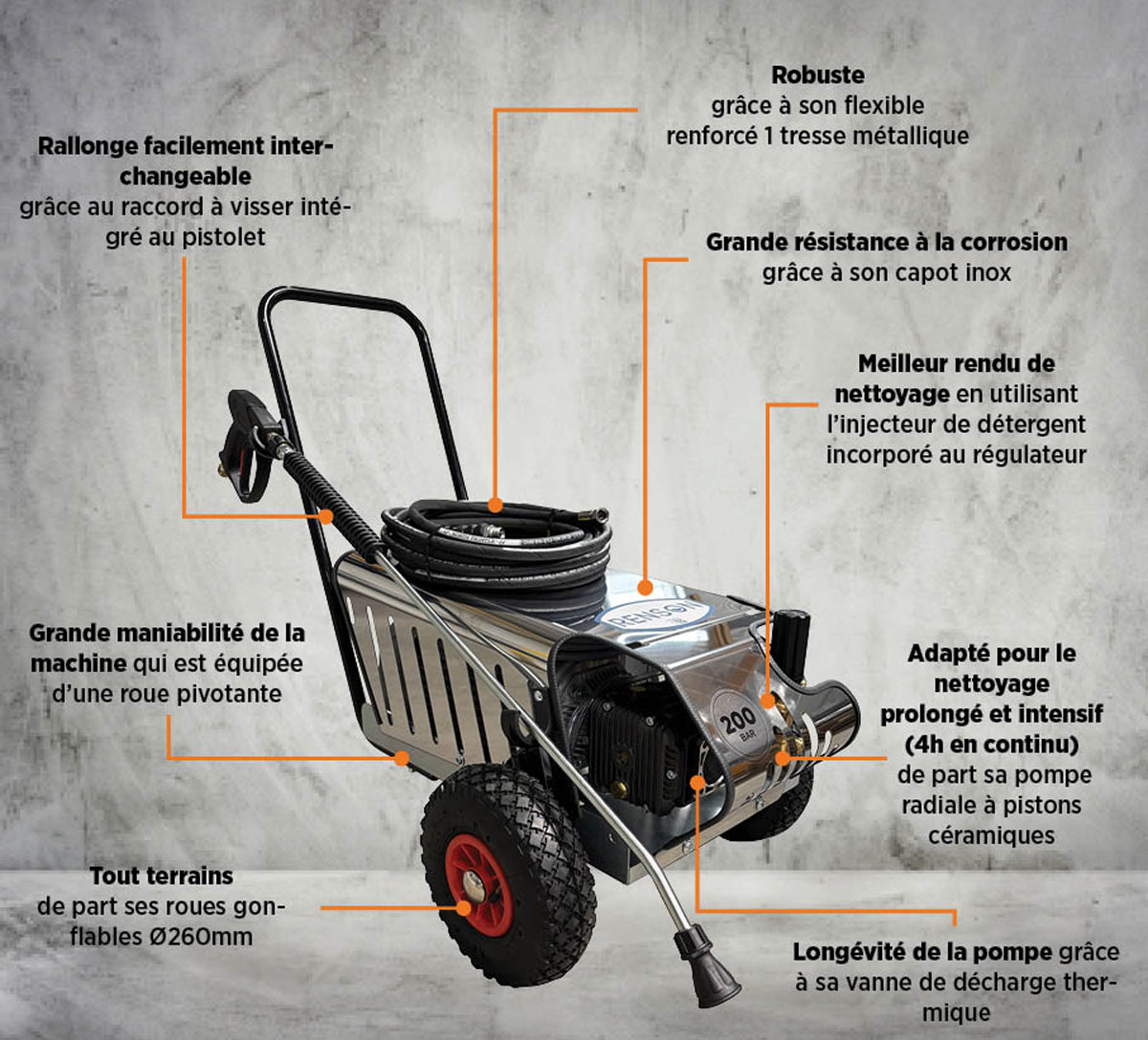 Cette conception permet aux professionnels de disposer d’un équipement de nettoyage performant et durable, adapté aux contraintes du terrain.