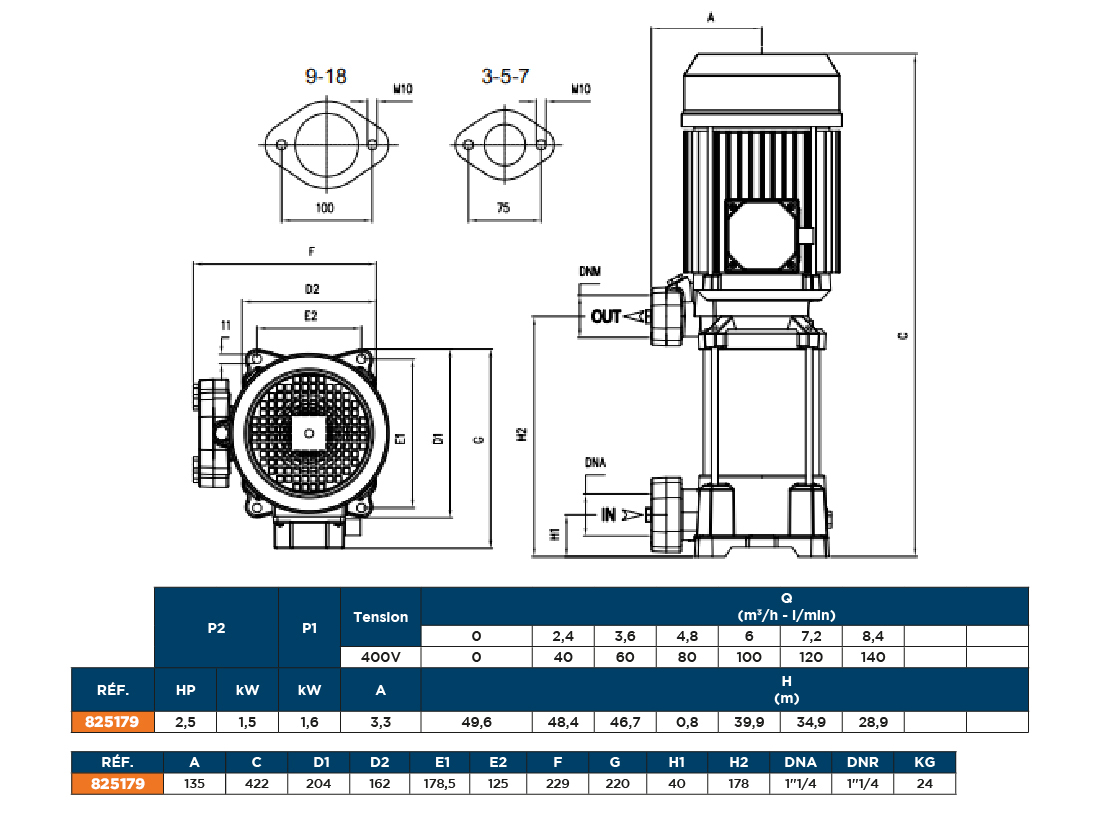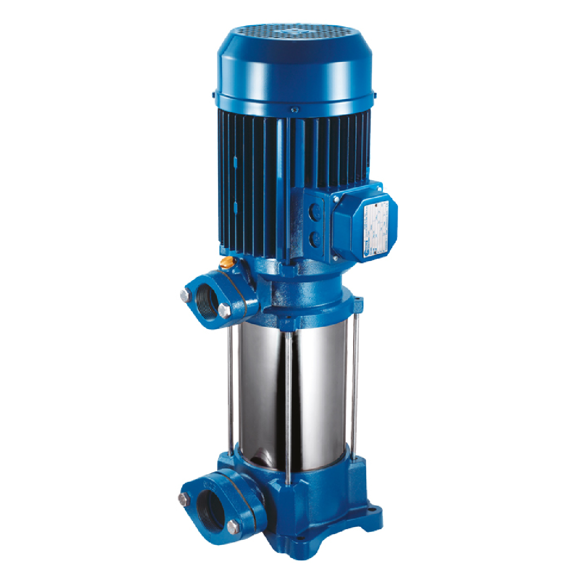 Pompe centrifuge multicellulaire verticale. Pompage d’eaux propres non chargées, groupe de surpression, irrigation, eau potable ou solution de glycol, traitement des eaux, industrie alimentaire, chauffage et climatisation, station de lavage automatique