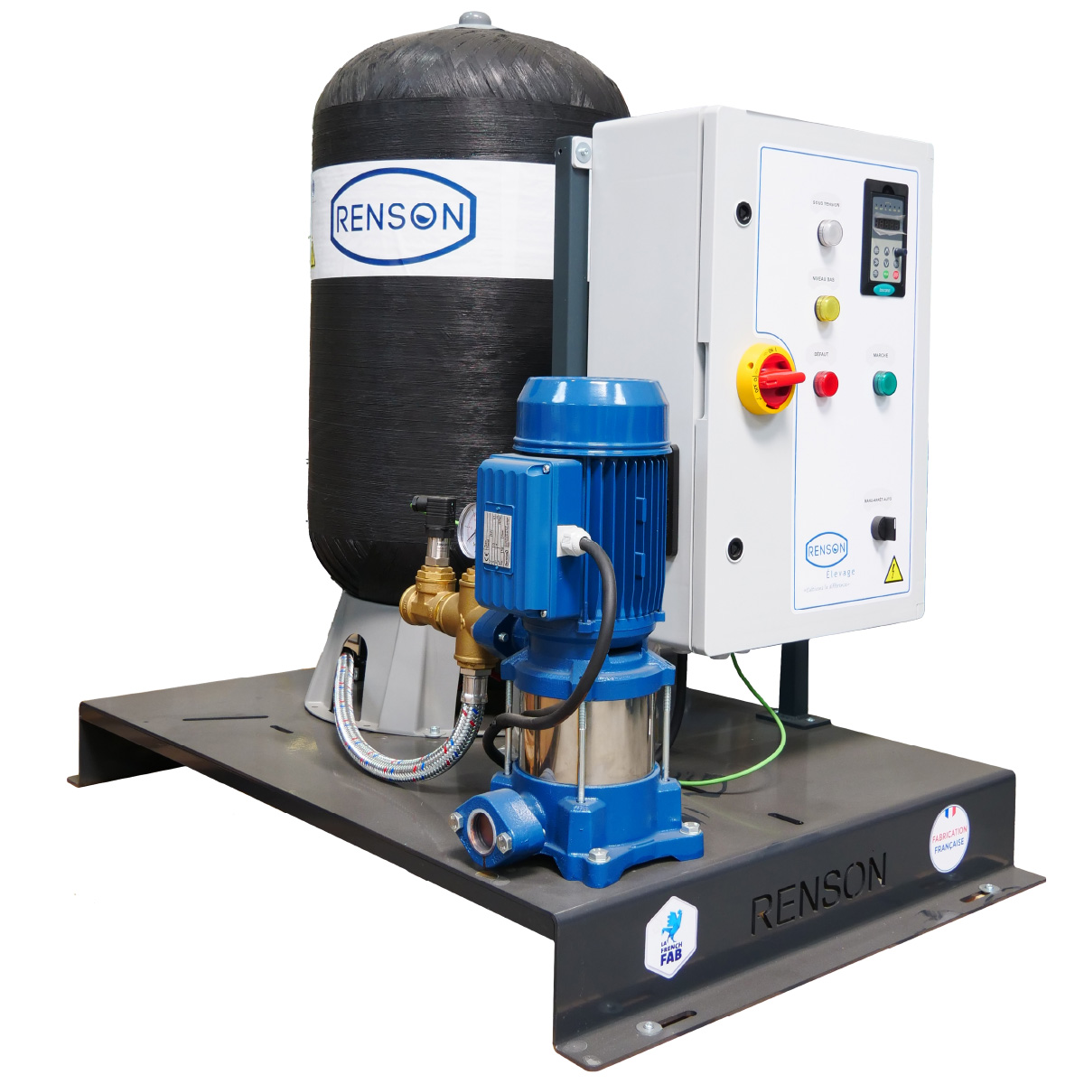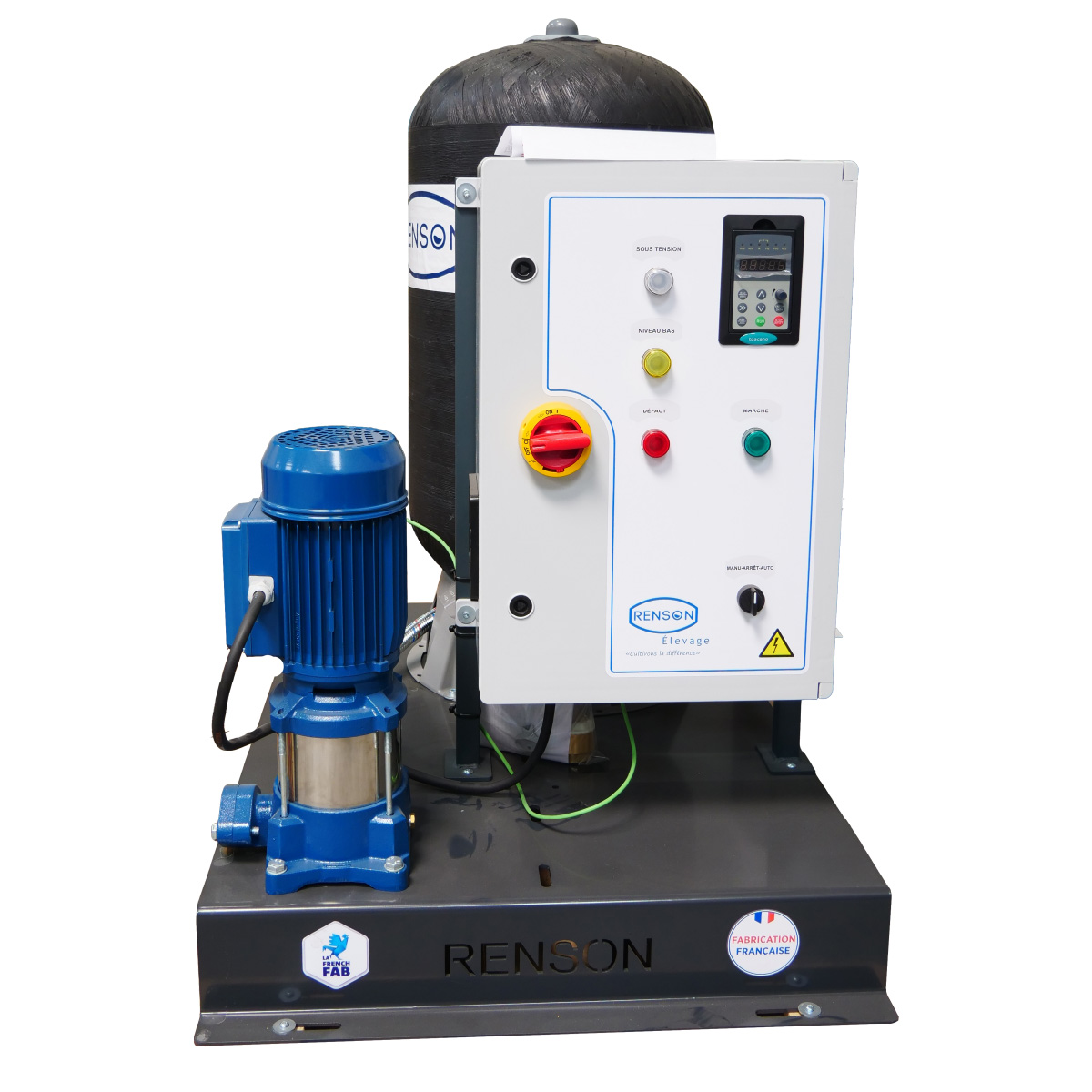 Le variateur de vitesse est déjà pré-réglé, il est dédié à la pompe. Il ne reste que la pression d'utilisation à régler par l'utilisateur, à faire en façade de coffret.