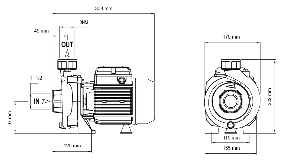 Pompes centrifuges de débit moyen pour petites et moyennes applications agricoles. Munies d’une turbine ouverte afin de permettre le passage de petits corps solides (Ø max. 10 mm).