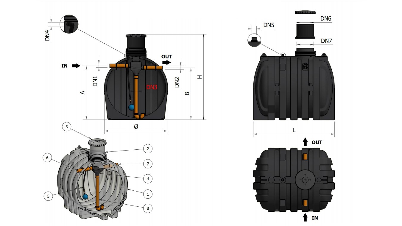 - Cuve, réhausse, filtre et couvercle en Polyétylène