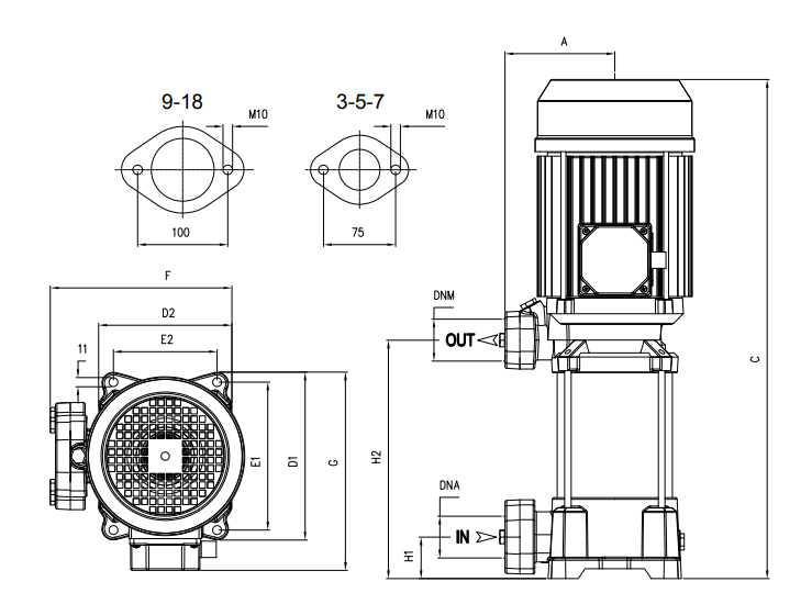 • Cette pompe est une pompe centrifuge multicellulaire à axe vertical en fonte conçue pour une variété d'applications pour les fluides propres non chargés : système de pressurisation, irrigation, eau potable et glycolée, traitement de l’eau, industrie agroalimentaire, chauffage et climatisation, système de lavage..