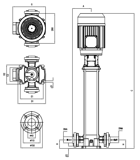 • Cette pompe est une pompe multicellulaire à axe vertical en fonte de qualité supérieure conçue pour une variété d'applications pour les fluides propres non chargés : système de pressurisation, irrigation, eau potable et glycolée, traitement de l’eau, industrie agroalimentaire, chauffage et climatisation, système de lavage..