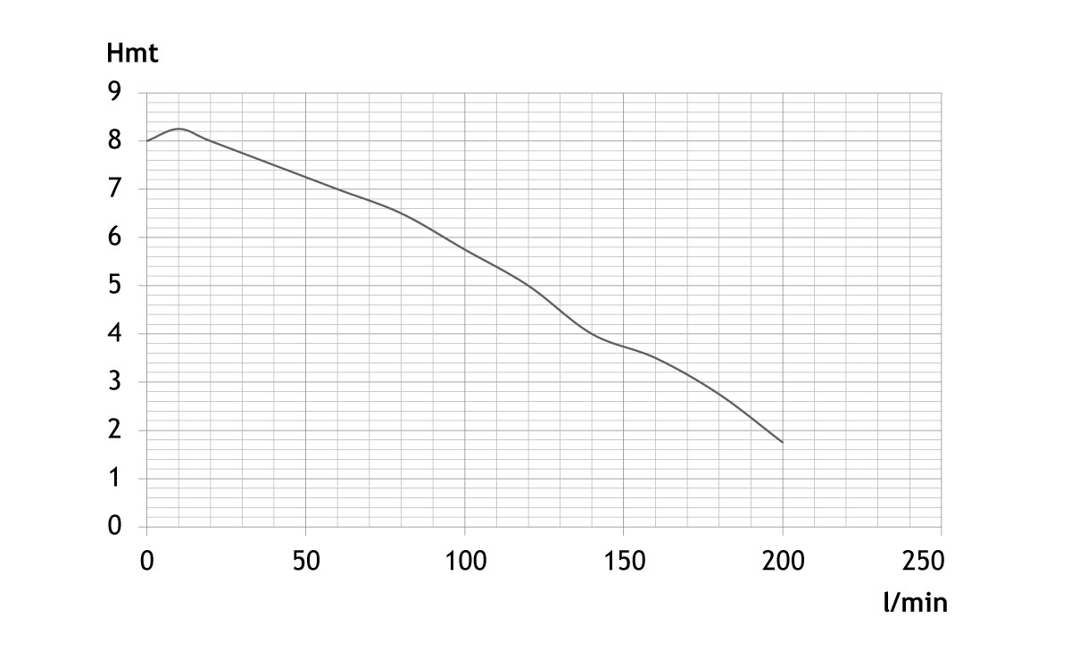 Pour HMT 8 mètres = débit de 0 m3/h ; 0 l/min