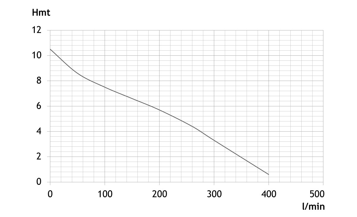 Pour HMT 10,5 mètres = débit de 0 m3/h ; 0 l/min