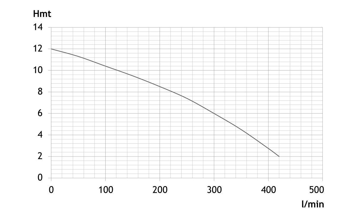 Pour HMT 12 mètres = débit de 0 m3/h ; 0 l/min