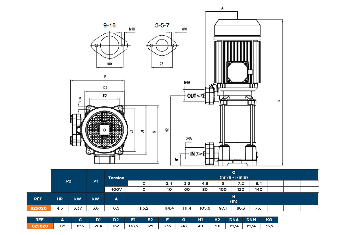 | Débit max : | 140 L/min | HMT max : | 115,20 mètres |