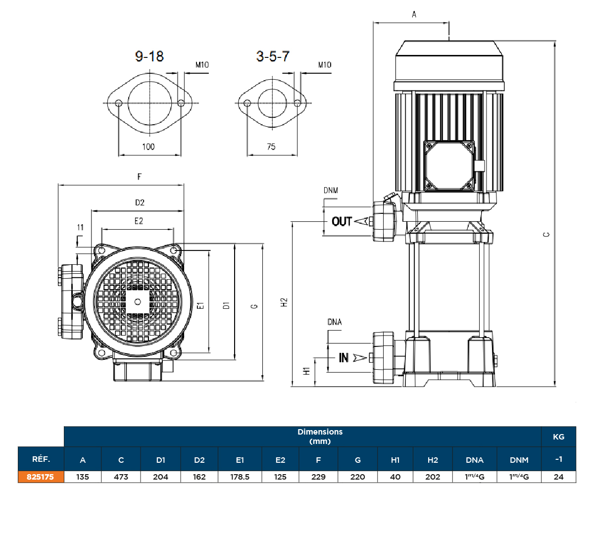 Pompe centrifuge multicellulaire verticale. Pompage d’eaux propres non chargées, groupe de surpression, irrigation, eau potable ou solution de glycol, traitement des eaux, industrie alimentaire, chauffage et climatisation, station de lavage automatique