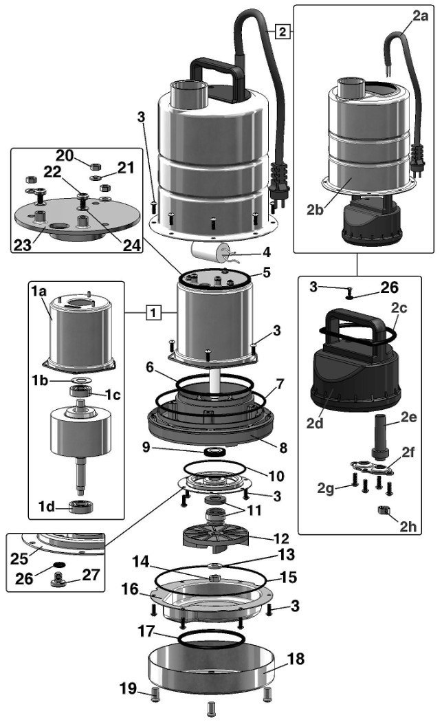 Corps moteur pompe et arbre en acier inoxydable respectivement AISI304 et AISI303