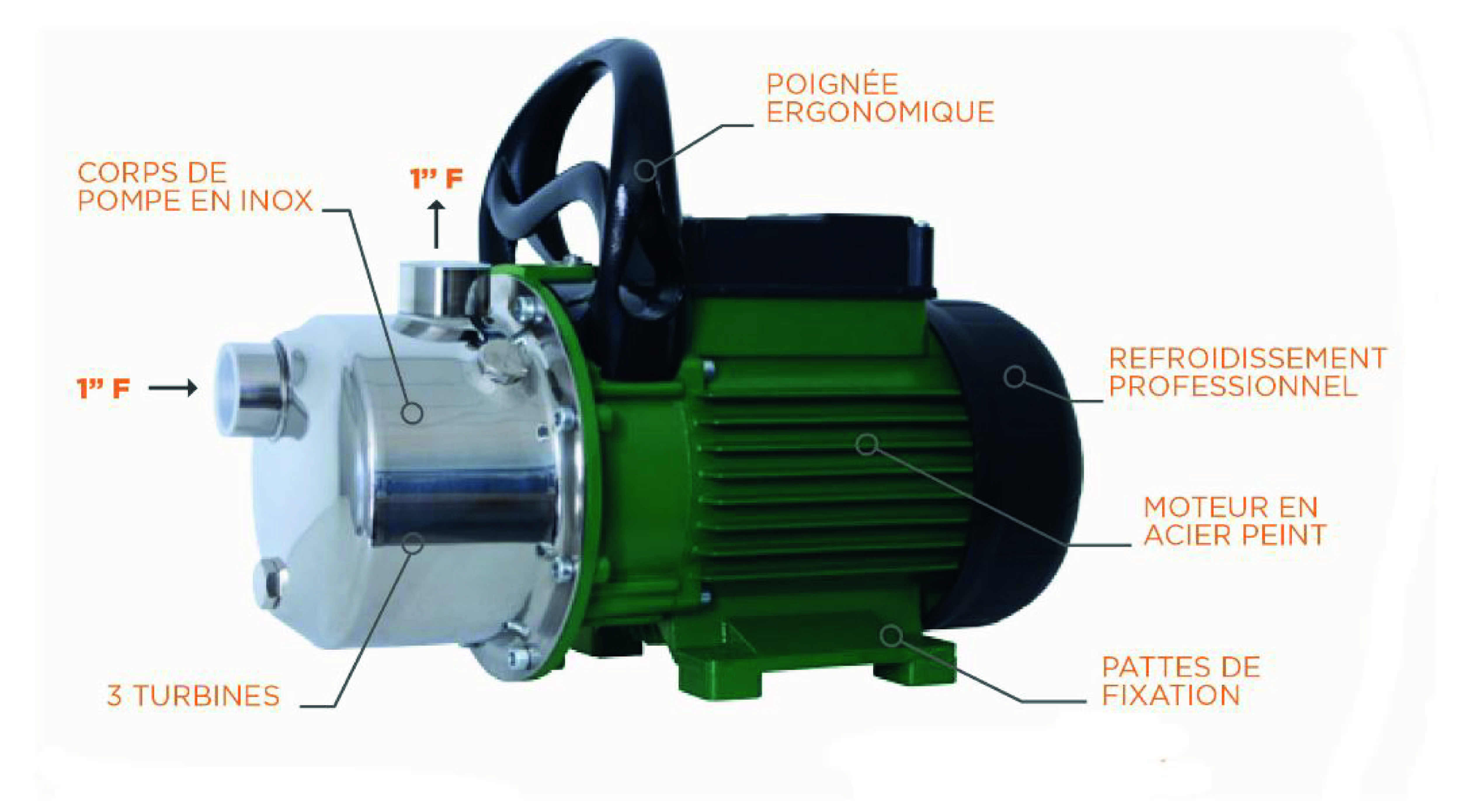 • Diamètre d’aspiration et de refoulement : 1’’ F
