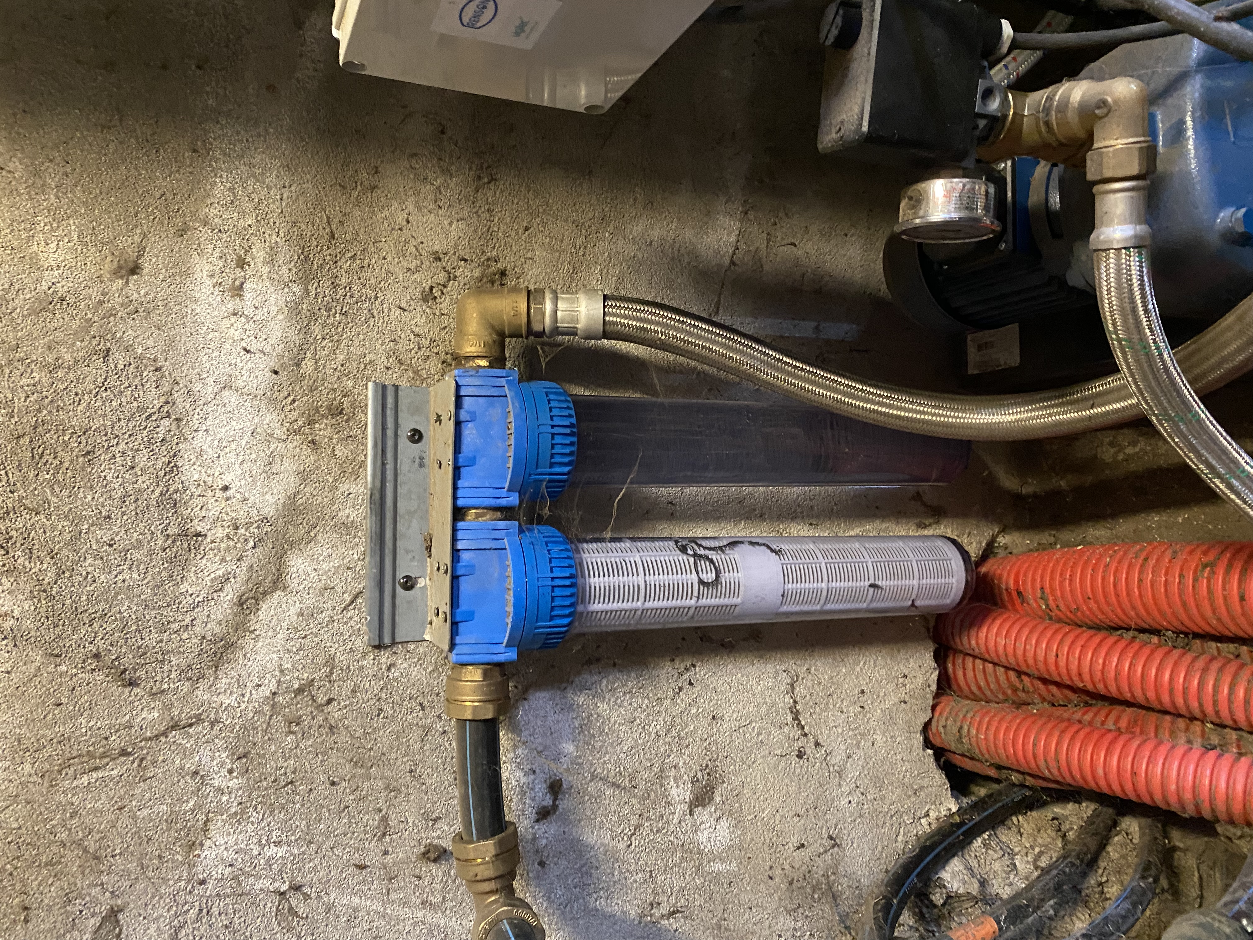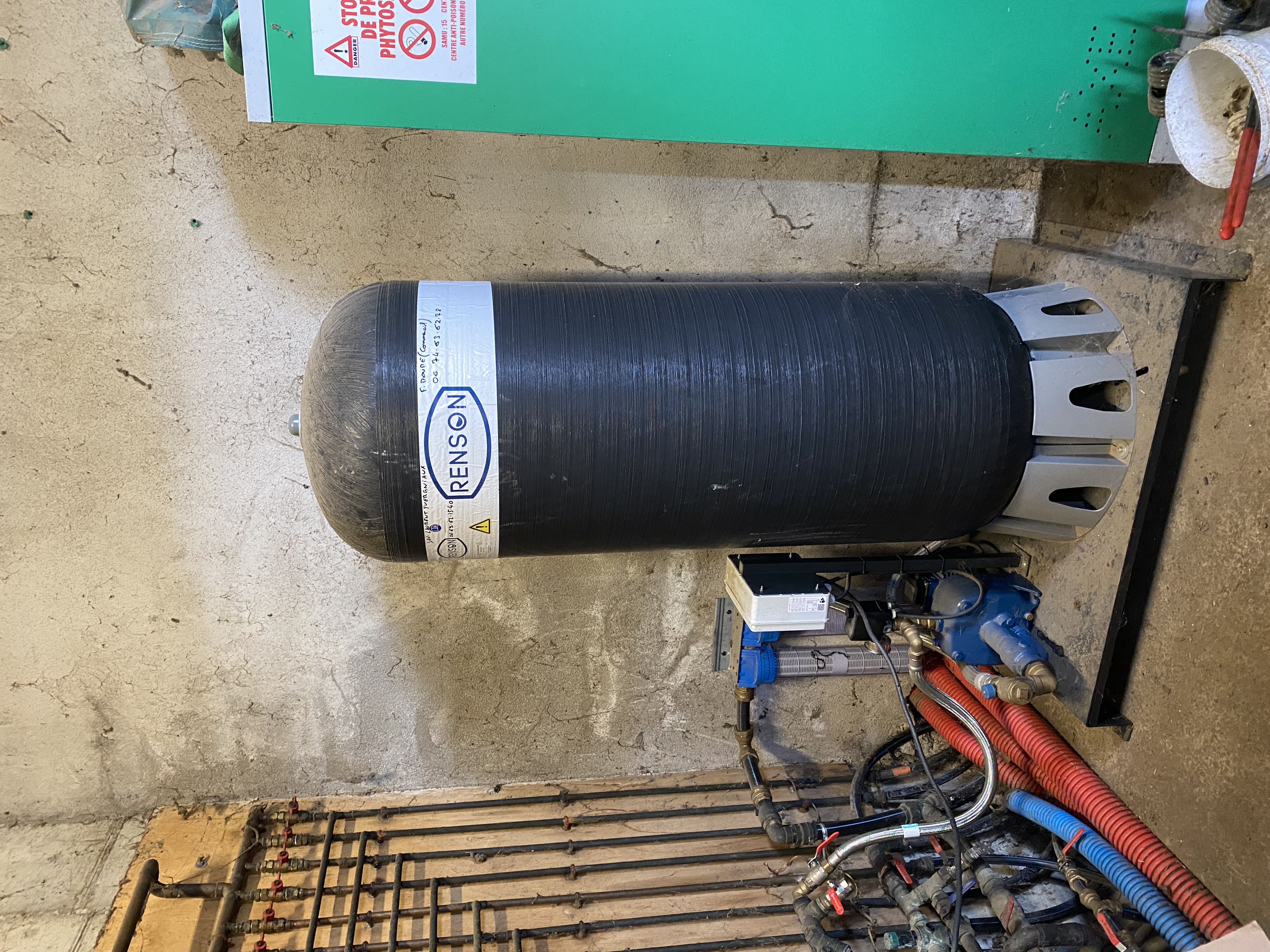 Pour répondre à ce besoin, RENSON ELEVAGE a mis en place un système de filtration pour filtrer l'eau de leur cuve. Pour mettre en pression l'eau dans tout le bâtiment, l'éleveur a opté pour un système de réservoir à vessie thermoplastique.